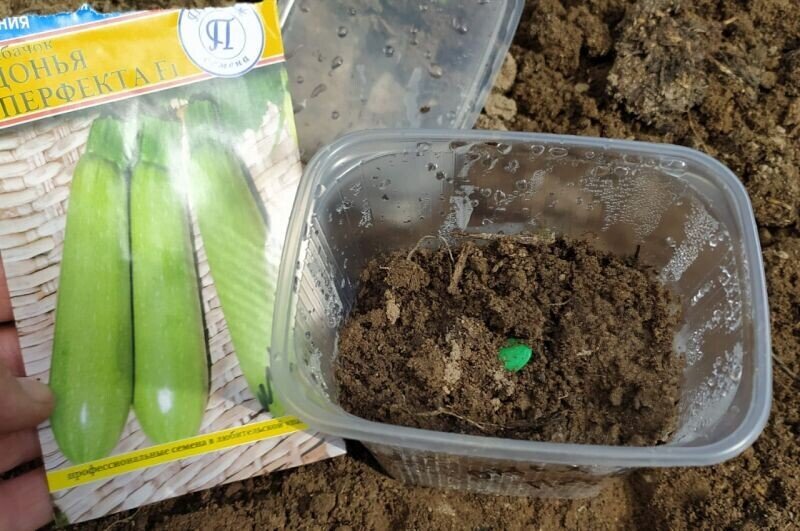Полейте почву и в центр каждого стакана положите одно семечко кабачка, присыпьте землёй на глубину около одного сантиметра. Накройте стаканы пленкой для создания мини-парника, а через 2-3 дня проверьте всходы. Как только появятся первые ростки, пленку можно убрать.