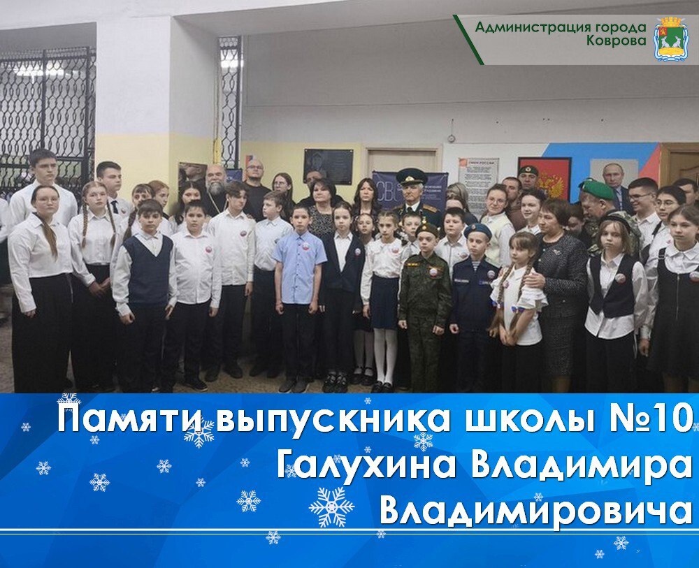 20 января в стенах МБОУ СОШ № 10 им. Героя Советского Союза В.А. Бурматова состоялось открытие мемориальной доски, посвящённой памяти выпускника Галухина Владимира Владимировича , героически погибшего в зоне СВО.