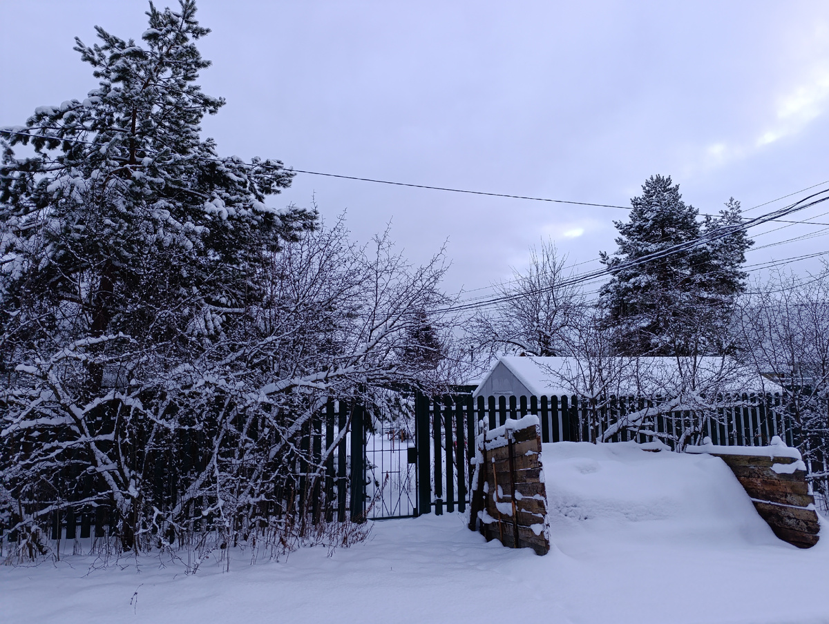 Недавно вдали от городских сует состоялась одна из таких поездок. Зимние пейзажи и свежий морозный воздух, температура показала -7 градусов, что казалось настоящим благословением после суровых морозов неделей ранее в Нижнем Новгороде. Снегу в садоводстве было предостаточно, так что вид на уже подросшую сосну, которая радует уже почти 20 лет, был просто великолепен.
