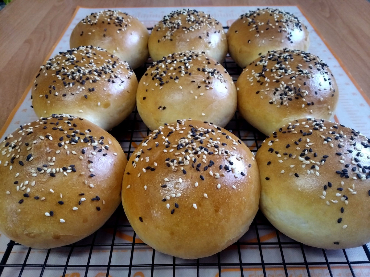 Процесс начинается с тёплого молока, дрожжей и базовых компонентов — они создают основу вкуса и текстуры. Далее тесто постепенно обретает гладкость: масса замешивается до состояния, когда рукам больше не мешает липкость, а масло добавляет нежности и легкости. Разделение на порционные шарики превращает заготовку в управляемый конструктор для будущих бутербродов. Расстойка продолжает формировать форму и характер булочек, а лёгкое смазывание и посыпка кунжутом дают завершённый вид.