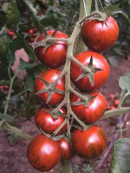 Солнечный отблеск на каждом плоде напоминает о том, что садоводство — это ритм и терпение. Томат Тигровый коктейль превращает ранний сбор в привычку: кусты тянутся вверх, а плоды мелкие, но яркие, с характерной черно-зелёной полосатостью.