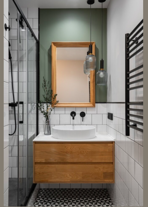 Белая керамика для ванны и раковины сохраняет чистоту и гармонию с остальными элементами. Аксессуары выполняют роль функциональных акцентов: натуральные полотенца, аккуратные полки и минималистичные держатели. Важна не декоративность, а способность каждого элемента служить повседневной жизни.