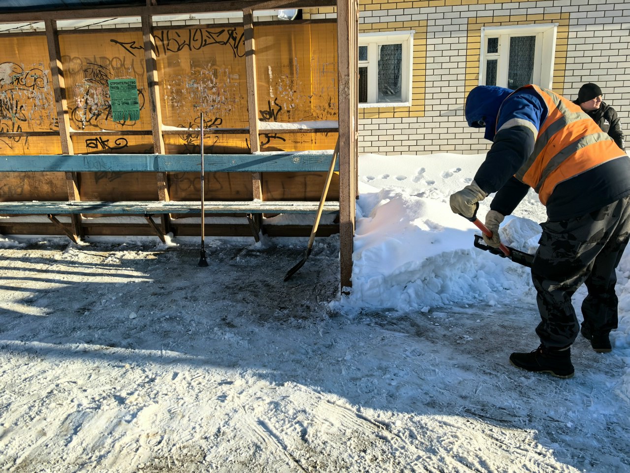 Работает спецтехника.Там, где не проходят машины, бригады очищают остановки, переходы вручную. Работа идет круглосуточно.