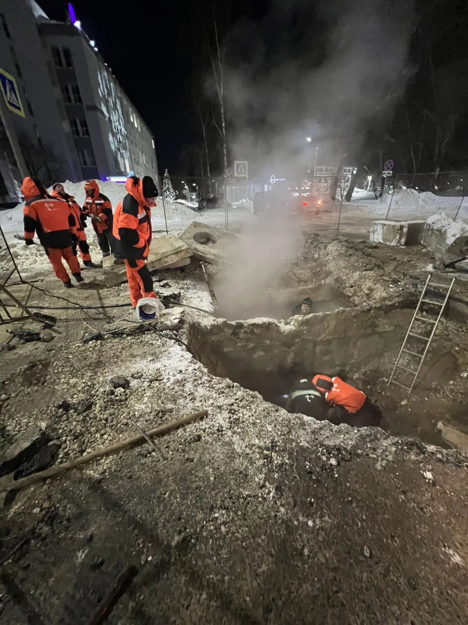 Теплоснабжающая компания завершила земляные работы в районе перекрёстка улиц Мира и Гороховая, и приступила к замене повреждённого участка трубы. На месте работает пять единиц техники и двенадцать человек.