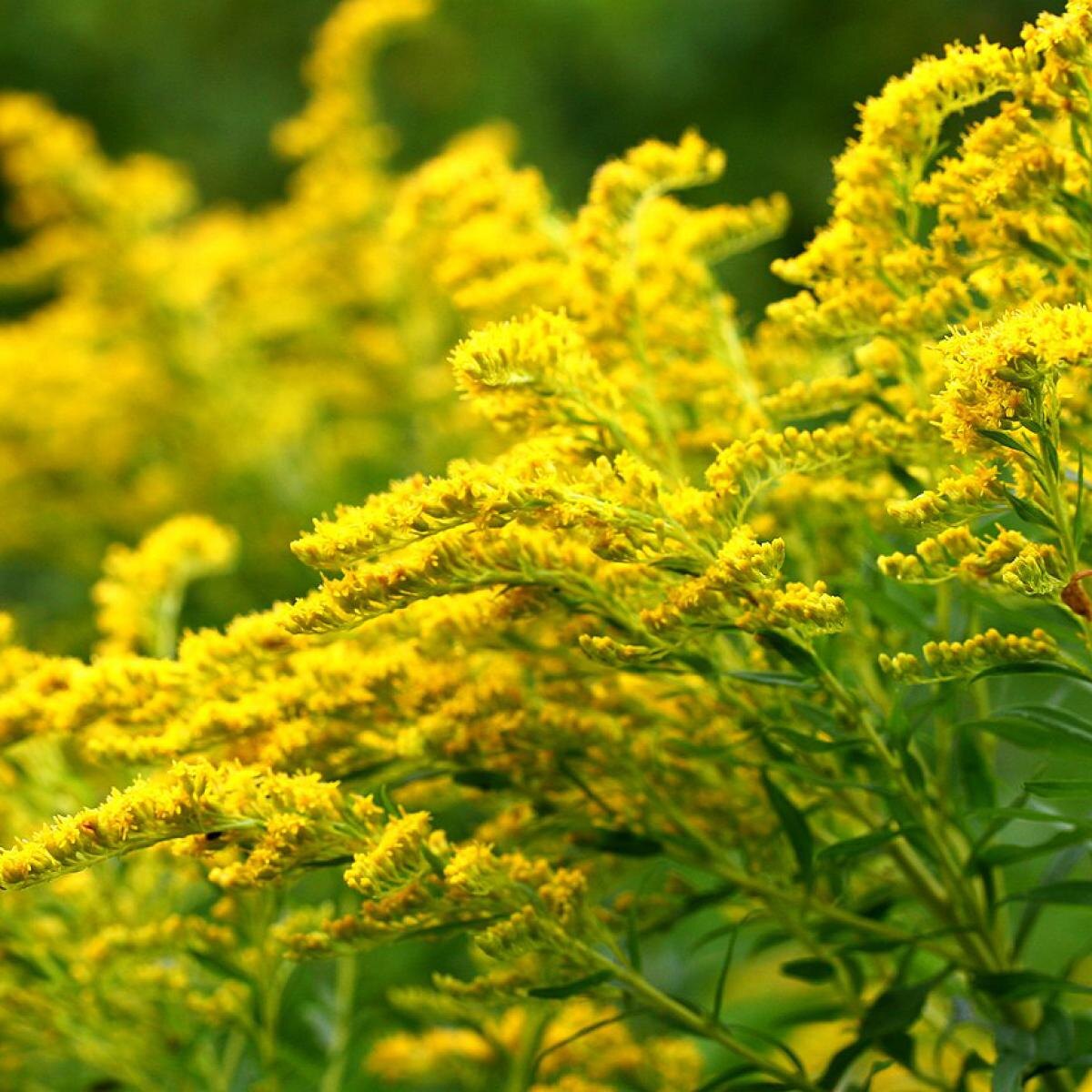 - Золотарник: этот яркий и долговечный цветок на самом деле является сорняком. Его корневая система выделяет химические вещества, которые угнетают рост соседних растений, и он разрастается с угрожающей быстротой. Необходимо внимательно следить за его распространением, чтобы не потерять контроль над садом.