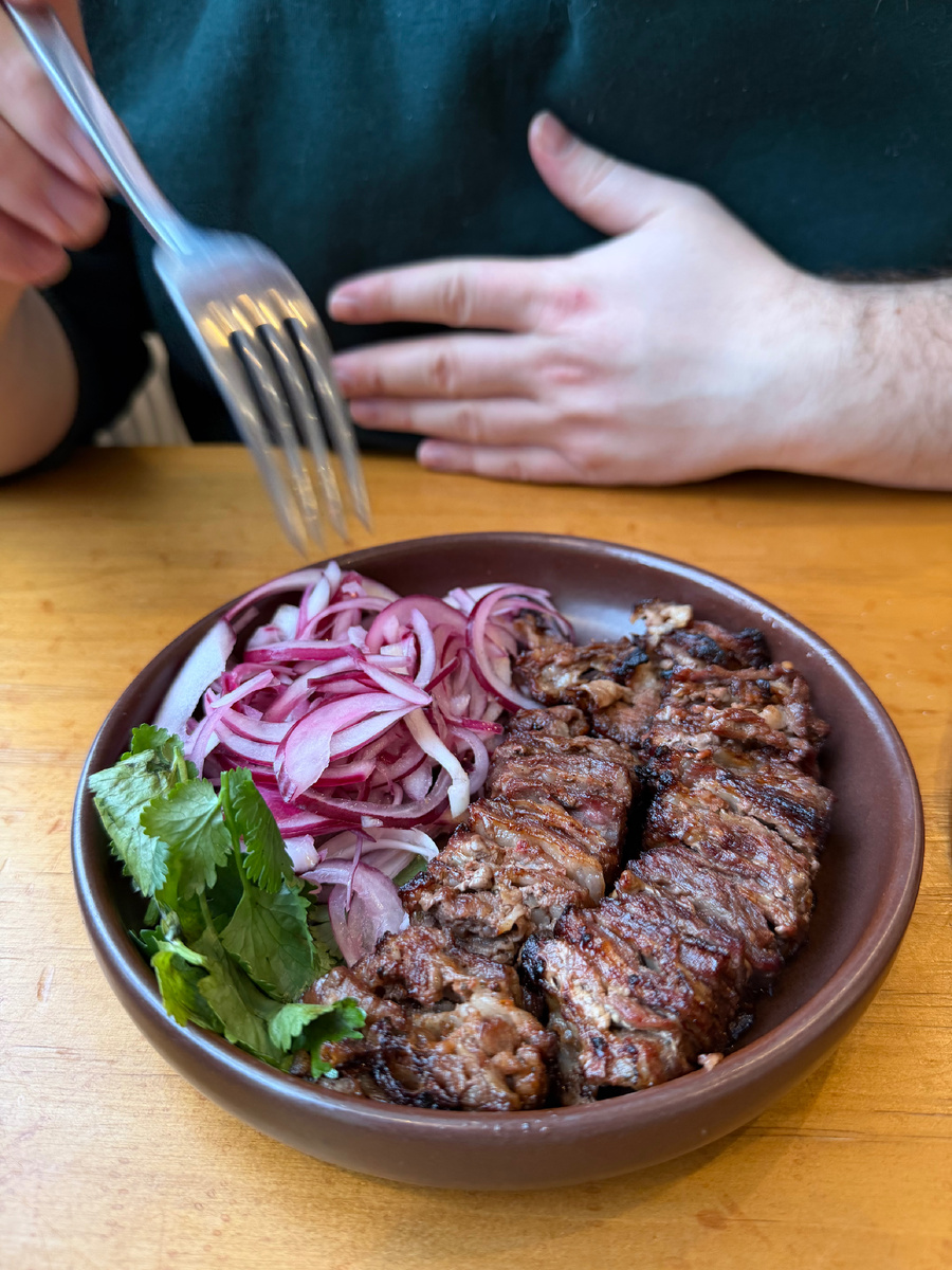 Заказав харчо, можно было ощутить подлинный вкус — насыщенный и с характерной кислинкой. Тот самый, который не перестаёт радовать. Уменьшенные порции, называемые «половинками», оказались такими же внушительными, как и полные. Забавный парадокс, который добавил особого шарма нашему вечеру.