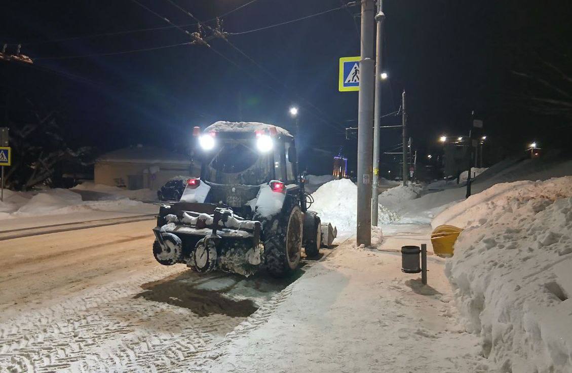 •Ночная смена: Техника и рабочие активно трудились на улицах Разина, Большая Московская, Большая Нижегородская, Суздальский проспект, Егорова, Добросельская, Усти-на-Лабе, на Электроприборовском проезде. Также расчищены ул. Пушкарская, Гагарина, выезд на Ерофеевский спуск, ул. Токарева, 9 Января, МОПРа, Казарменная, мкр. Оргтруд и остановки ул. Вокзальной. В ночную смену было задействовано 68 единиц снегоуборочной техники.