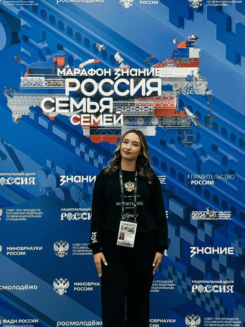 «Для меня данное мероприятие значит очень многое, так как я побывала на сцене со многими известными, значимыми личностями нашей страны, увидела, насколько разнообразна наша страна, познакомилась также со многими ребятами из разных городов, регионов и увидела то самое единство, которое хотели показать и описать на этом мероприятии. И это просто не передать словами, насколько мои эмоции зашкаливают. То, что мы сделали за этот день, это того стоило. Так что мы все счастливы и безмерно рады!»