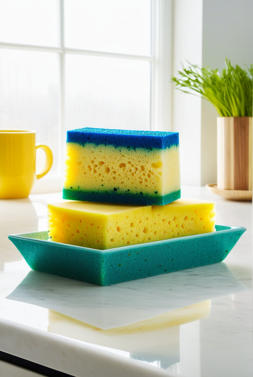 - Для дезинфекции губки можно обрабатывать уксусом или прогревать в микроволновке (без металлических частиц).