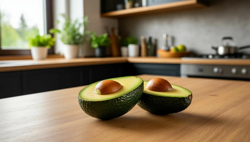 Важно осматривать кожуру на наличие вмятин и темных пятен — это может означать, что фрукт уже перезрел. Также стоит проверить плодоножку: если под ней мякоть ярко-зеленая, значит, авокадо созрело идеально. Для планов на 3-5 дней лучше взять твердое авокадо.