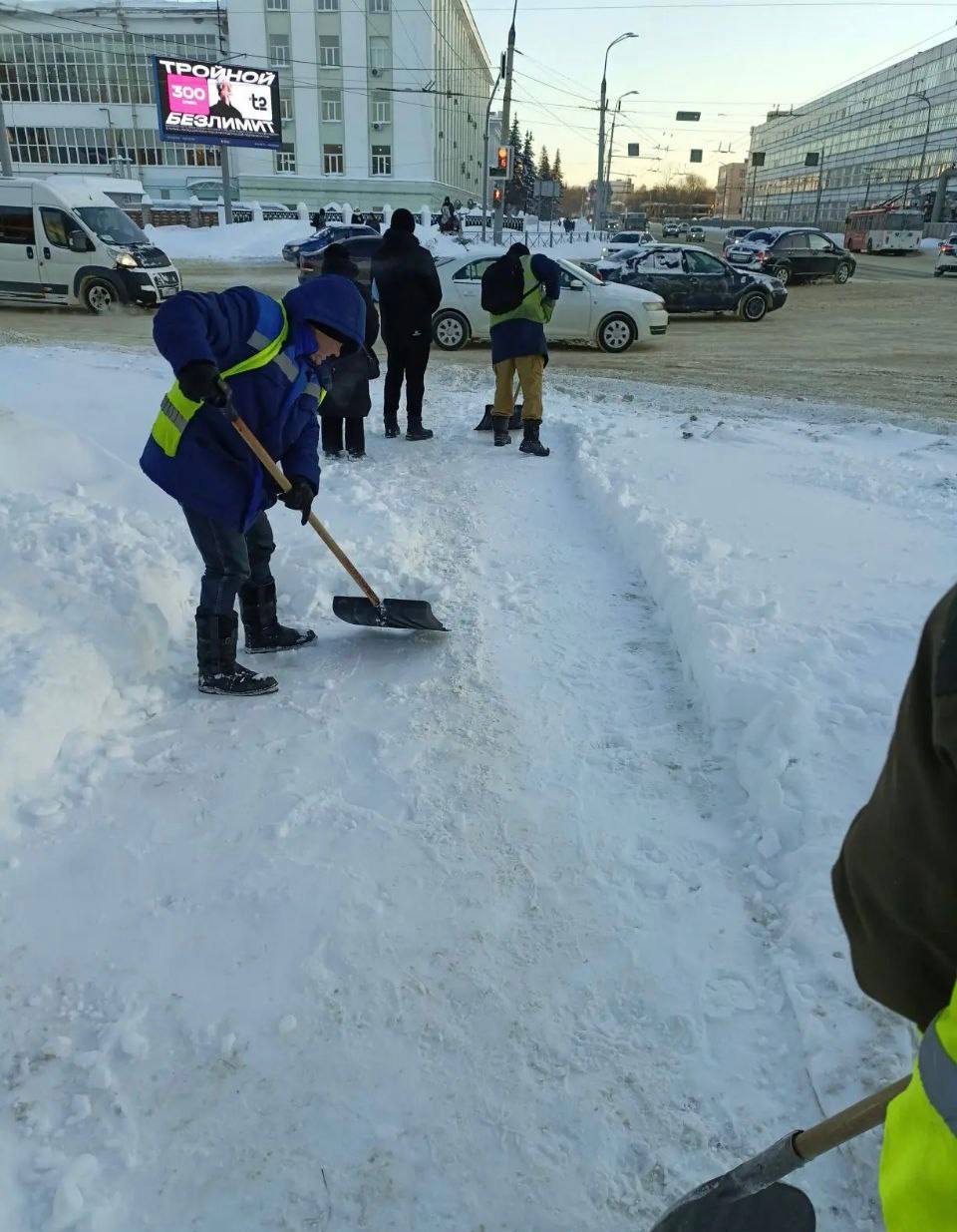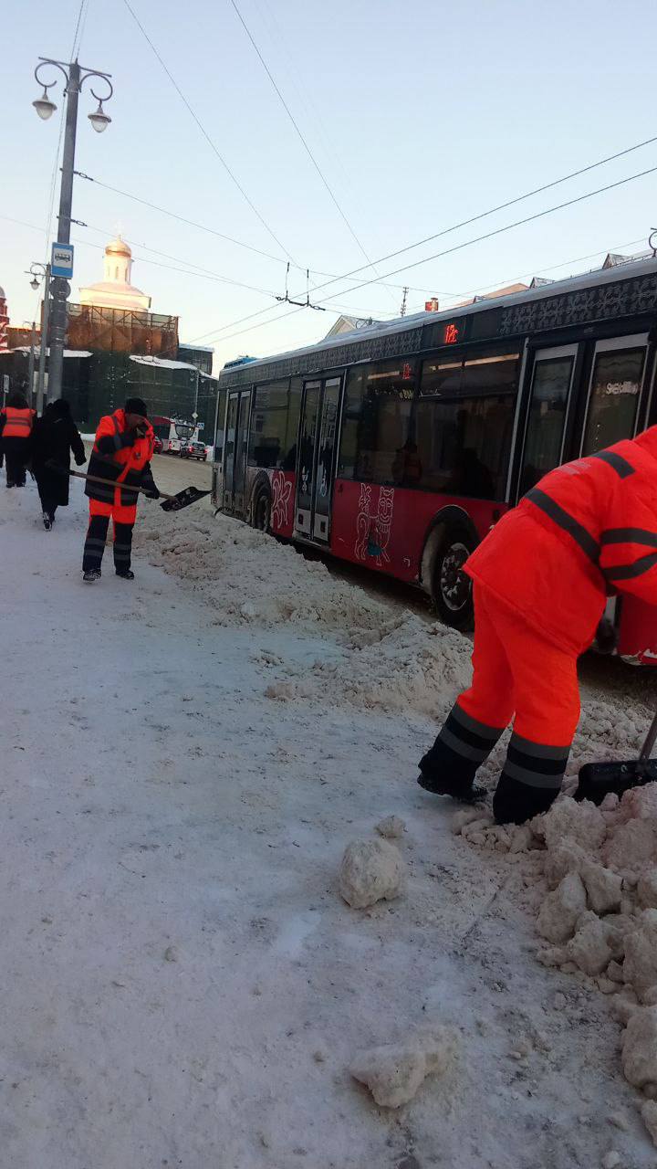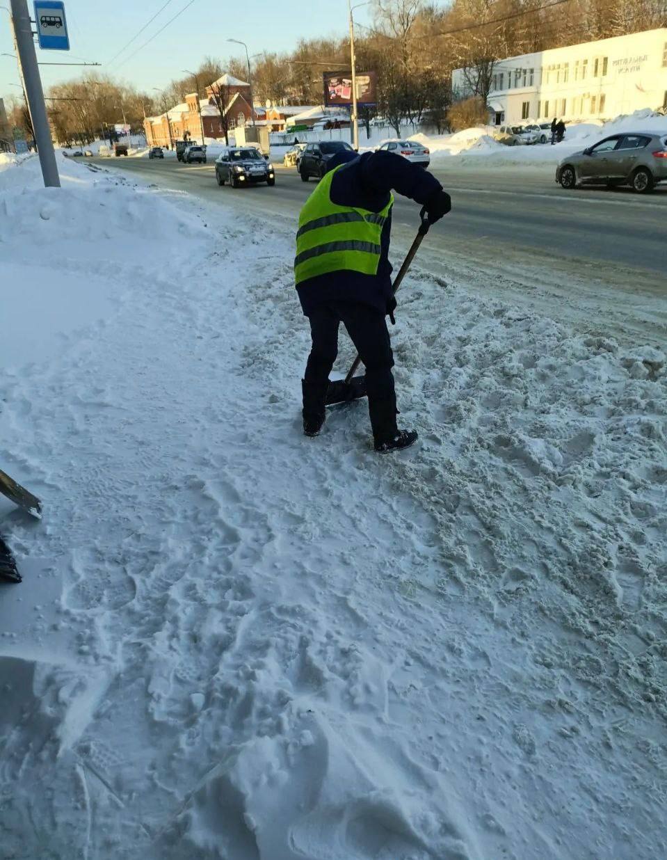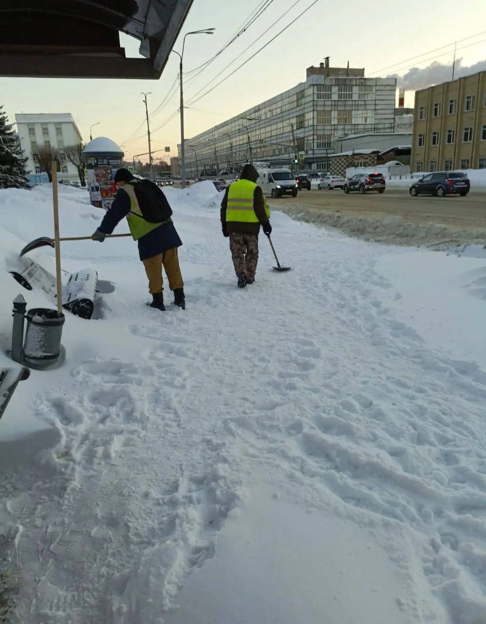 Помимо дорог, особое внимание уделяется расчистке пешеходных зон, подходов к переходам и остановочных павильонов.