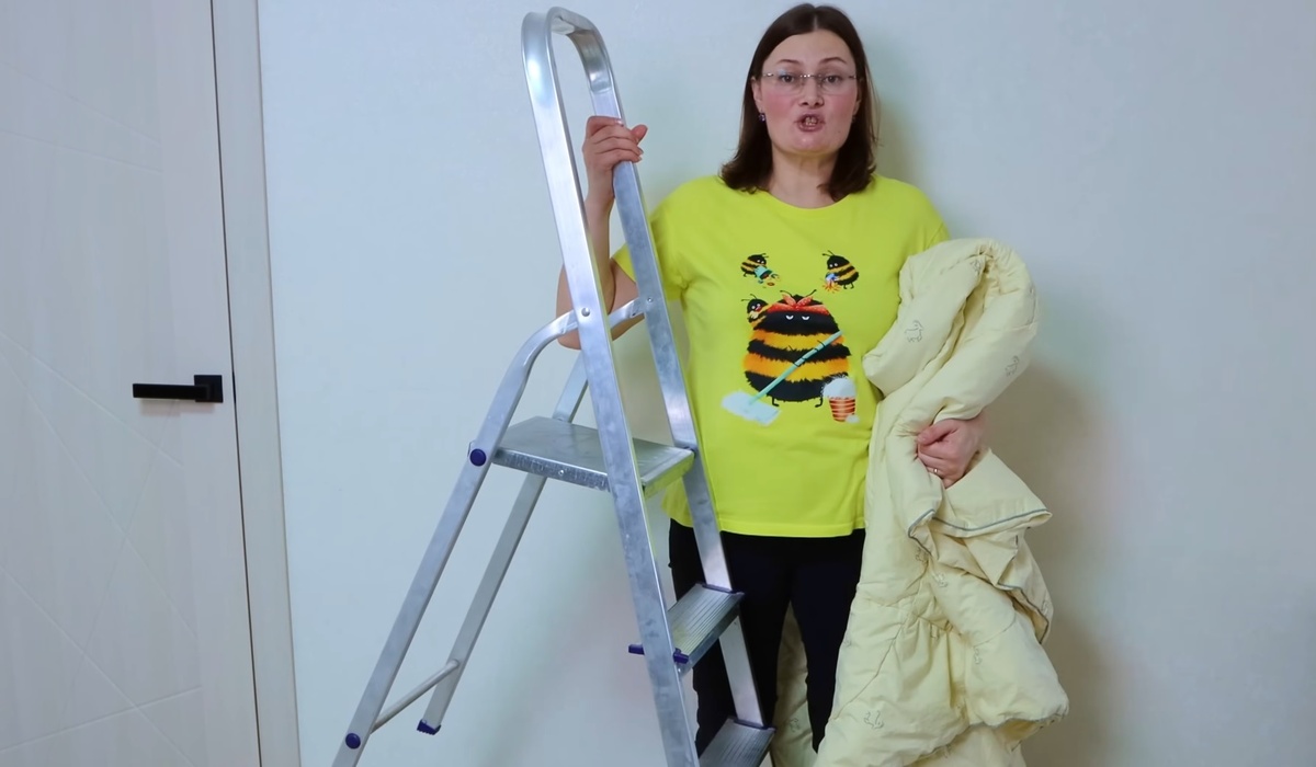 - Использование лестницы: Установите стремянку или лестницу в ванной комнате и накиньте одеяло так, чтобы оно свободно дышало. Влага будет быстро стекать, а ткань просохнет равномерно.