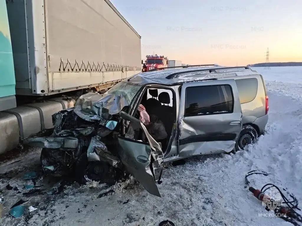Авария произошла накануне вечером на повороте в деревню Лазарево. 24-летний водитель «Лада Ларгус» при обгоне врезался во встречный грузовик «Даф». После удара отечественную легковушку отбросило на попутный джип «Тойота Хайлендер». Сам виновник ДТП попал в больницу.