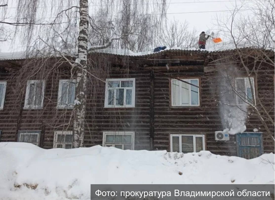 ЧП из-за снежных масс: крыша двухэтажного дома в Гусь-Хрустальном частично сложилась.