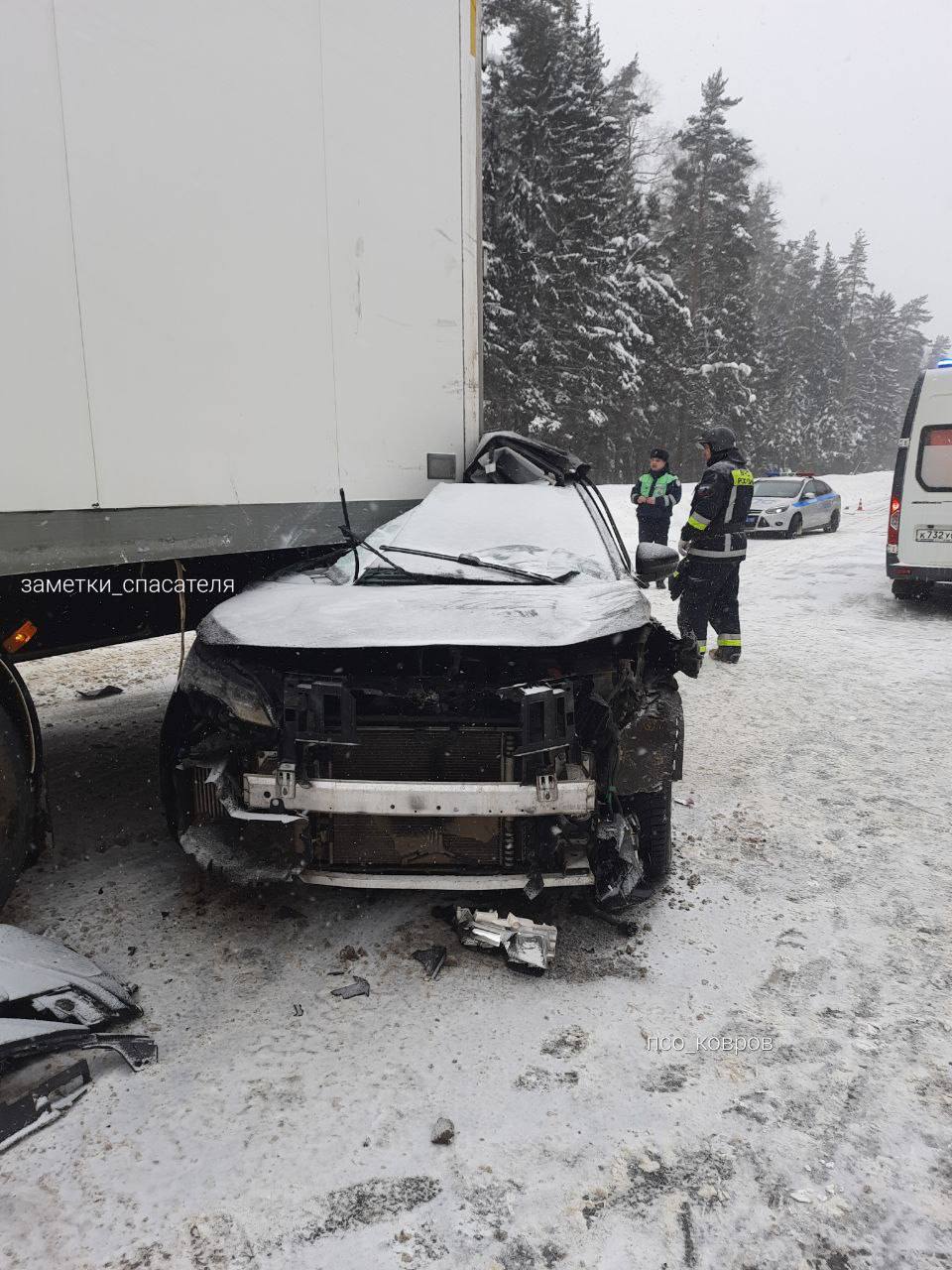 Днем 21 февраля на трассе М-7 около населенного пункта Пестово столкнулись большегруз и легковой автомобиль. В легковушке зажало мужчину.
