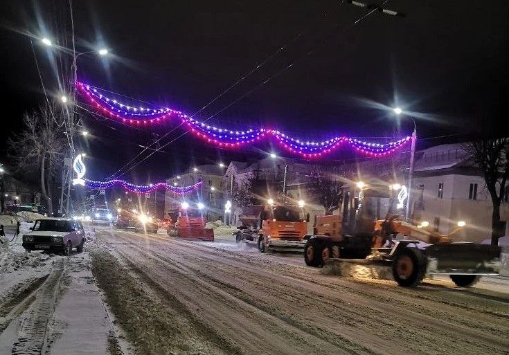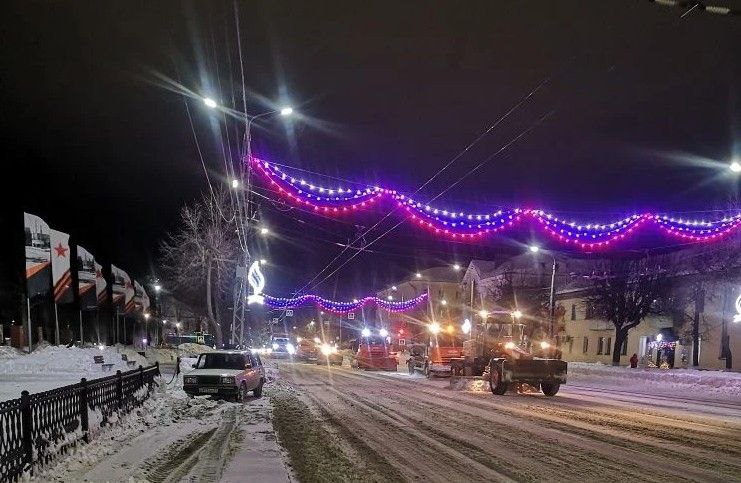 В ночные и утренние часы проводилась уборка снега с пр. Ленина, улиц: Комсомольской, Кирова, Крупской, Строителей, Волго-Донской, Зои Космодемьянской, Грибоедова, Космонавтов, Ватутина, Маяковского, Куйбышева, Колхозной, Муромской, Социалистической, Либерецкой. Вывоз снега производится с улиц Абельмана и Дегтярева. Работы продолжаются.