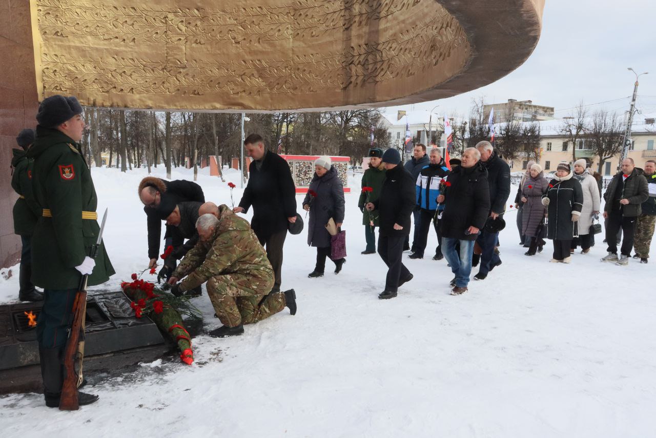 Минутой молчания почтили память о погибших героях, защищавших нашу Родину в разные времена. Участники мероприятия возложили гирлянду и цветы к мемориалу Победы, отдав дань глубоко уважения мужеству и героизму защитников Отечества.