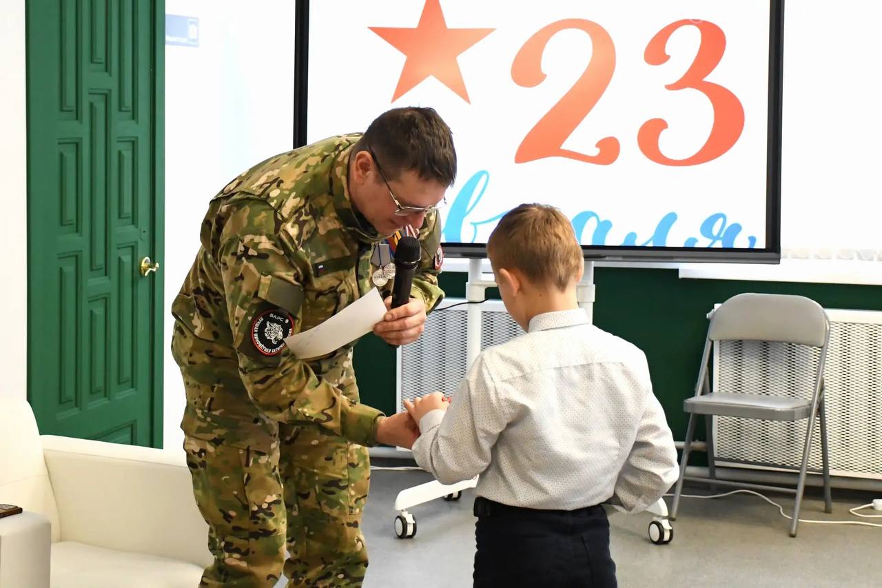 Валерий Робертович поделился с ребятами своими воспоминаниями о службе: рассказал, почему принял решение добровольно пойти на фронт, о трудностях, с которыми пришлось столкнуться, о боевой подготовке и героизме товарищей. Школьники узнали много нового про условия солдатского быта, важность взаимовыручки на передовой, а также о наградах гостя и подвигах, за совершение которых они были получены.