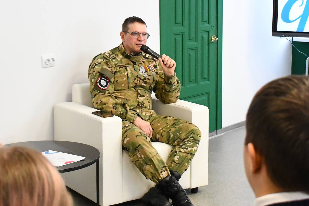 Накануне Дня защитника Отечества в молодежном пространстве «Притяжение» г. Радужный прошёл урок мужества, почетным гостем которого стал участник специальной военной операции, ветеран боевых действий Валерий Преображенский.