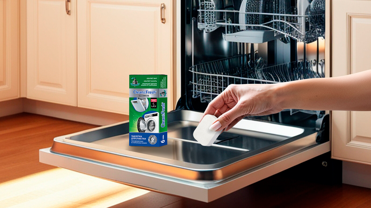 Используйте жидкий очиститель для посудомоечных машин, например, Clean&Fresh для глубокой очистки. Это средство успешно удаляет грязь и налет, а также помогает в профилактике накипи, продлевая срок службы машины.