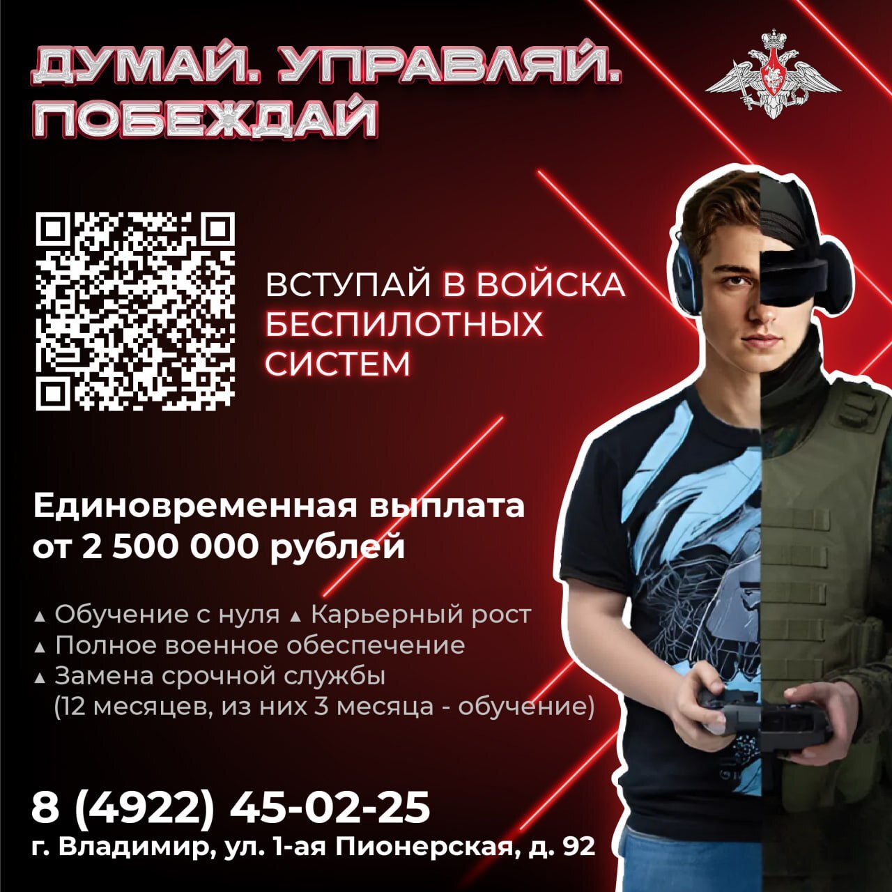 Жителей Владимирской области приглашают на службу в войска БПС. Это шанс войти в армейскую элиту, где ценят скорость мышления, точность решений и техническую грамотность.