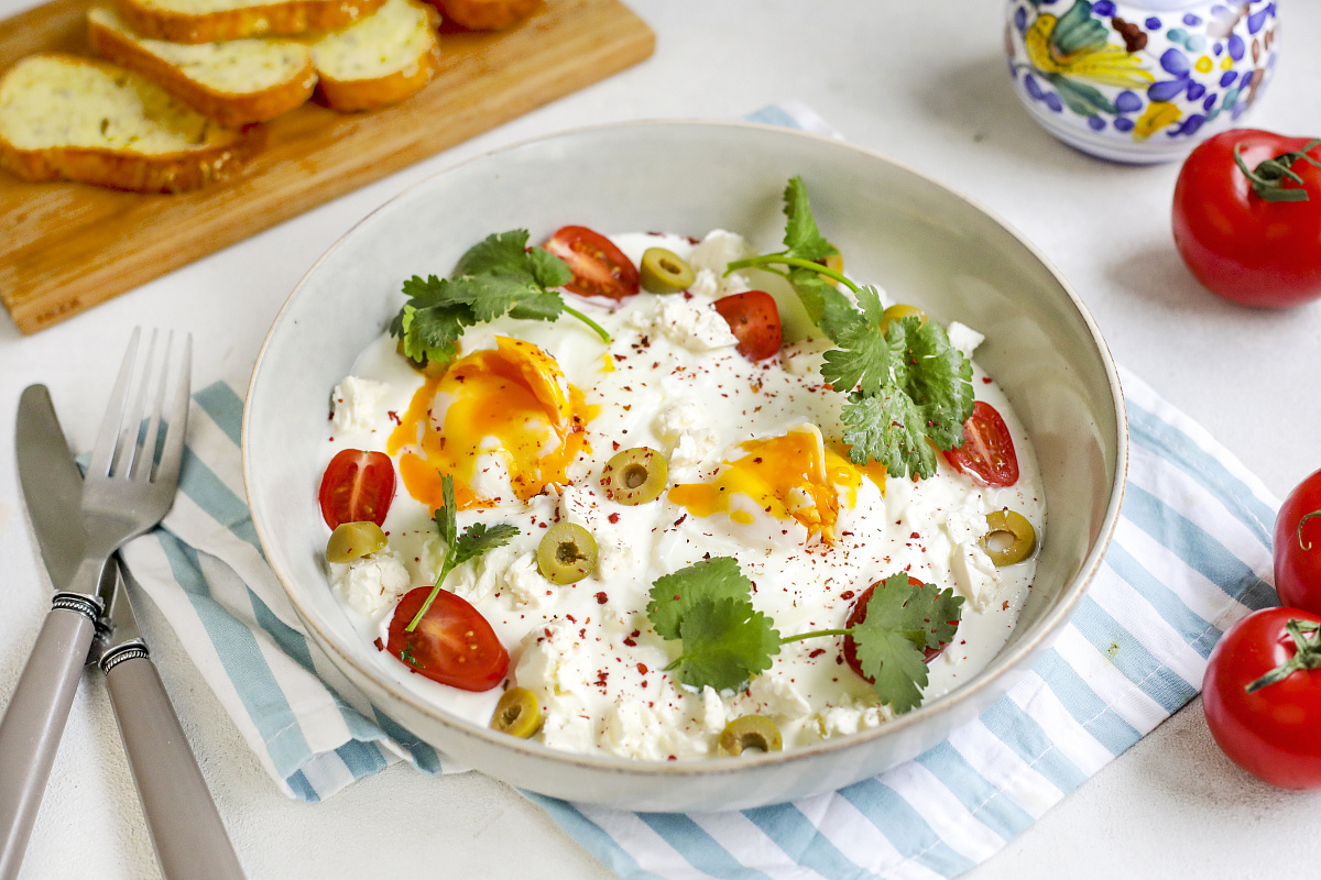 Этот завтрак перенесет вас в атмосферу роскошного турецкого отеля, где завтраки накрывают с размахом. Хотя за окном может быть прохладно, великолепные яйца пашот с фетой и греческим йогуртом подарят вам заряд позитива на весь день. Готовы изменить утреннее настроение? Тогда вперед!