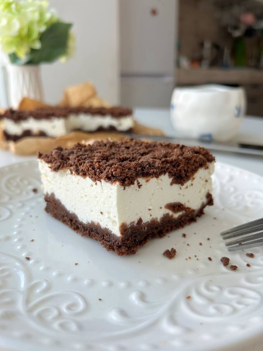 Теперь можно собирать ватрушку. На дно формы выложите половину подготовленной крошки, сверху распределите начинку, а затем накройте оставшейся крошкой. Выпекайте в предварительно разогретой до 170 градусов духовке около одного часа. После приготовления дайте остыть. Нежная текстура и шоколадный вкус не оставят равнодушным никого!