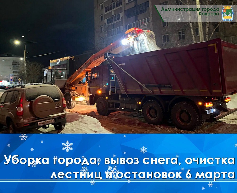 Сегодня, 6 марта, МКУ «Город» вывозил снег с ул. Профсоюзной, ул. Грибоедова, пр. Мира. Механизированная уборка дорог проводилась на ул. Еловой, ул. Космонавтов, ул. Социалистической, ул. Зои Космодемьянской – участок от ул. Грибоедова до кафе «Суфра». Кроме того, чистили дороги на ул. 1-й проезд Станиславского, ул. Малая железнодорожная, разворотный круг на ул. Муромской, ул. Куйбышева, пешеходные переходы и подходы к ЦГБ на ул. Еловой, ул. 2-я Запольная (детский сад №38).