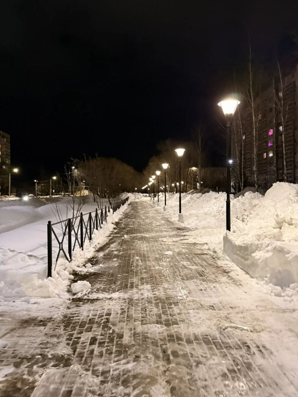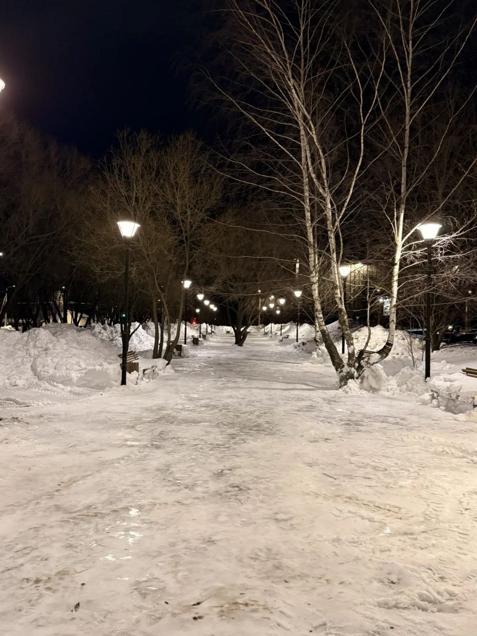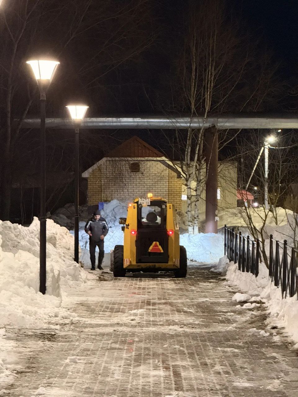 В ночную смену МКУ "Город" проводил очистку от снега улицы Ватутина, тротуаров на улицах Грибоедова, Еловая , площади 200 лет Коврову, сквера им. А. В. Тменова.
