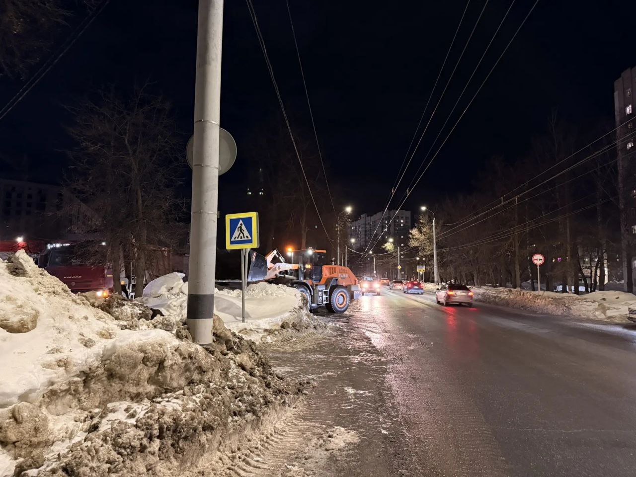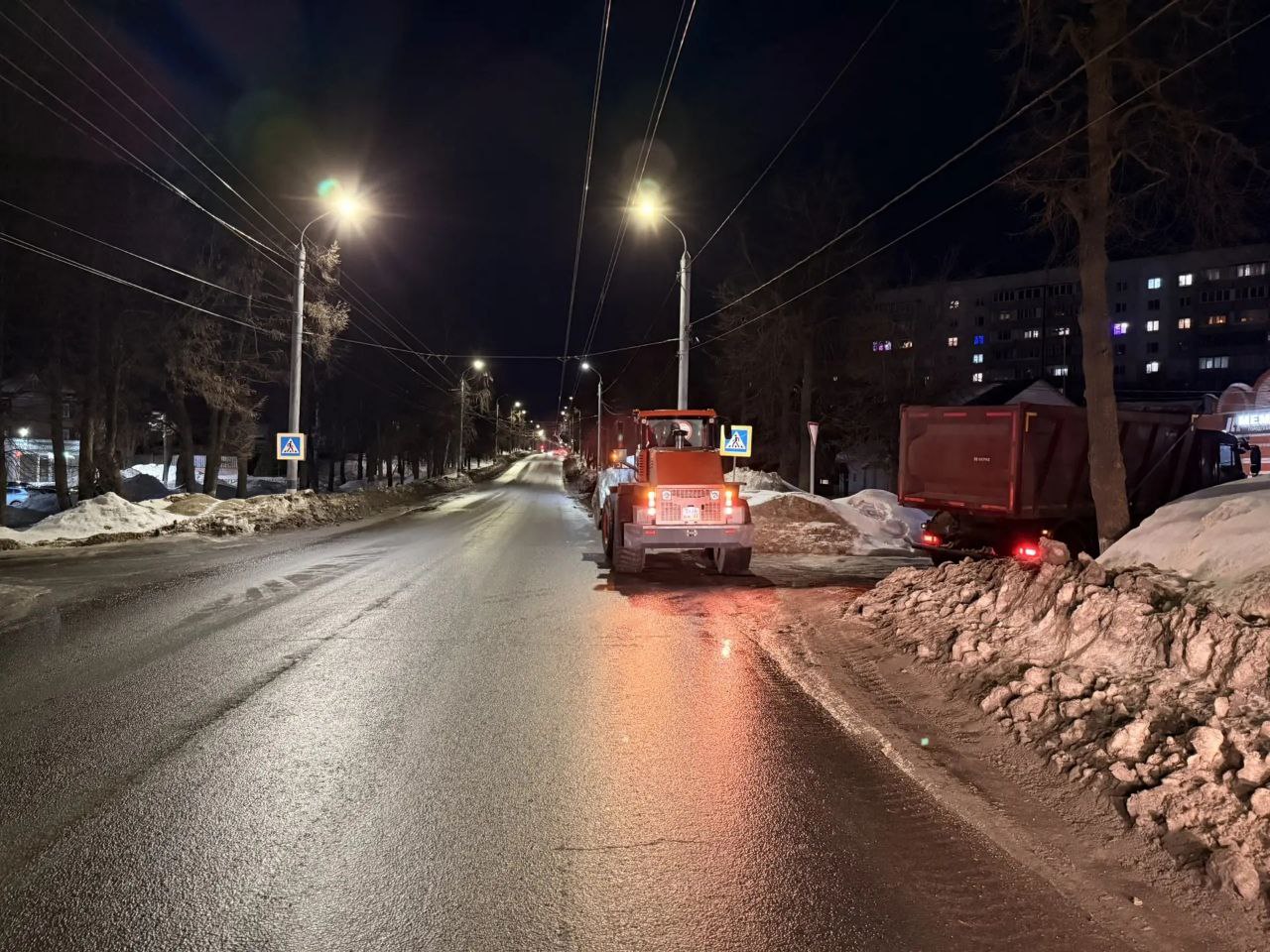 Вывоз снега с ул. Еловая, ул. Комсомольская, снежных валов вблизи остановок и пешеходных переходов.