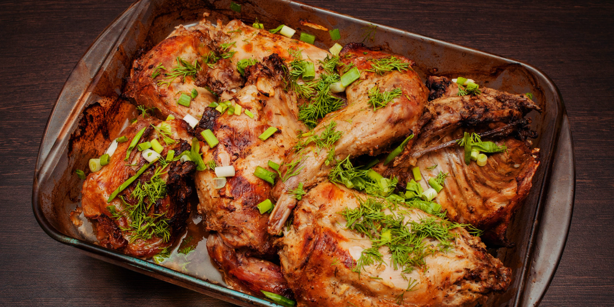 Рецепт: Кролик, запеченный с прованскими травами и чесноком