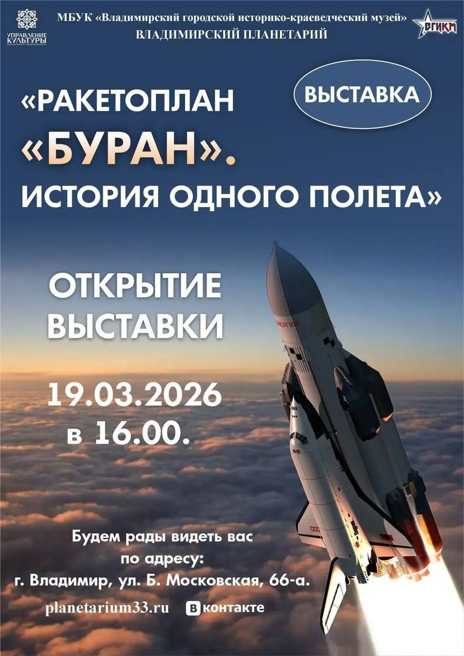 Владимирский городской историко-краеведческий музей открывает уникальную выставку «Ракетоплан „Буран“. История одного полета». Это шанс прикоснуться к эпохе великих научных открытий и почувствовать гордость за грандиозные достижения советской космонавтики.