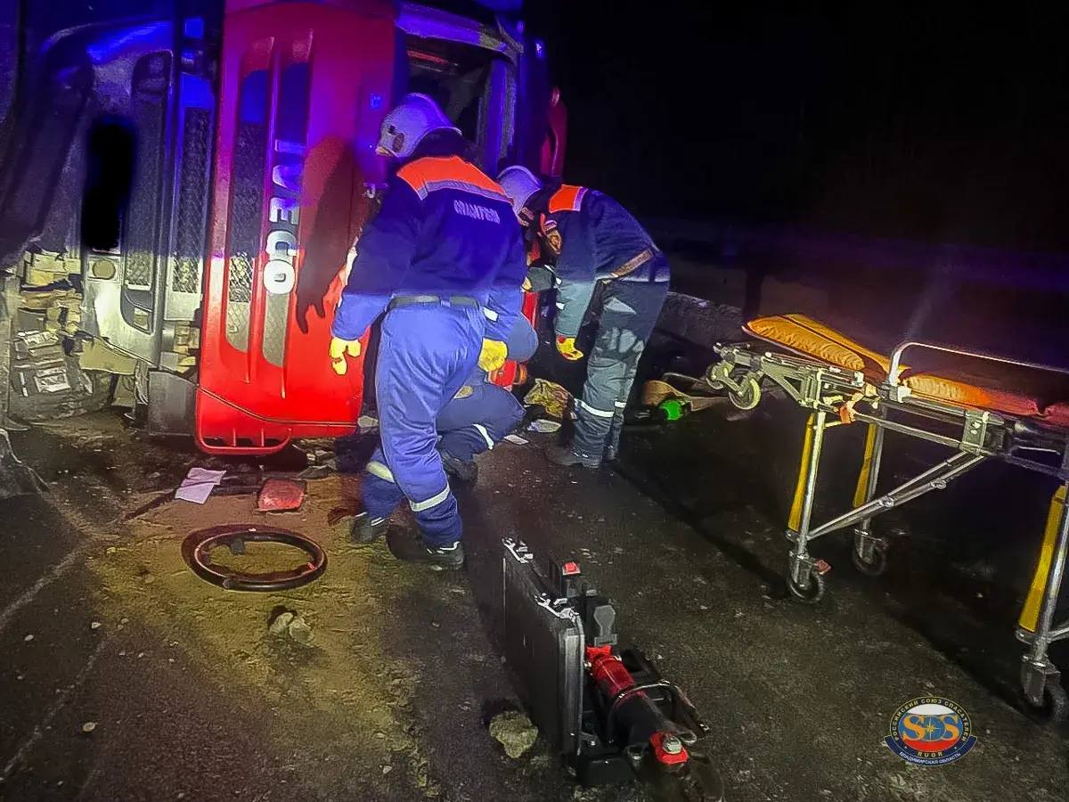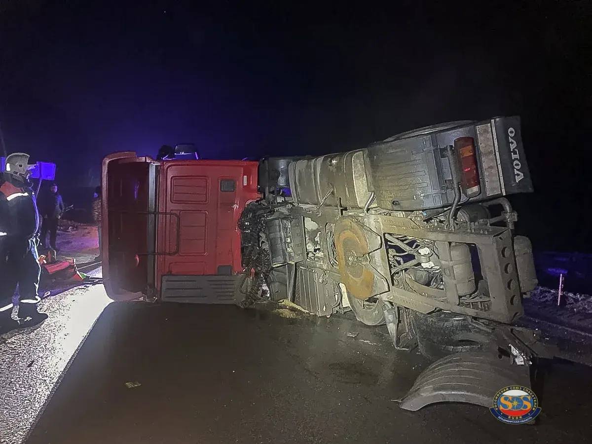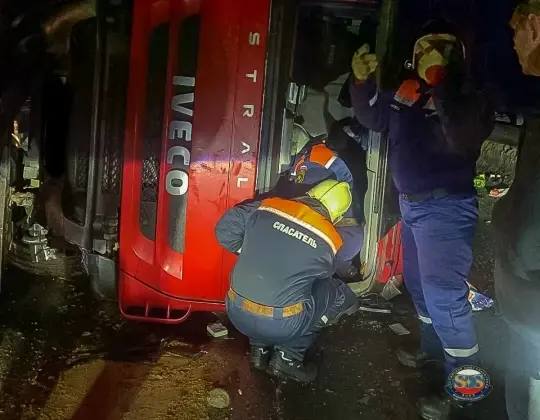 Авария произошла накануне вечером на трассе М-7 на мосту реки Черная. На место выехали сотрудники владимирского Россоюзспаса. Спасатели обнаружили опрокинутый большегруз «Ивеко» без прицепа. В автомобиле в этот момент находился водитель, которого зажало в кабине.
