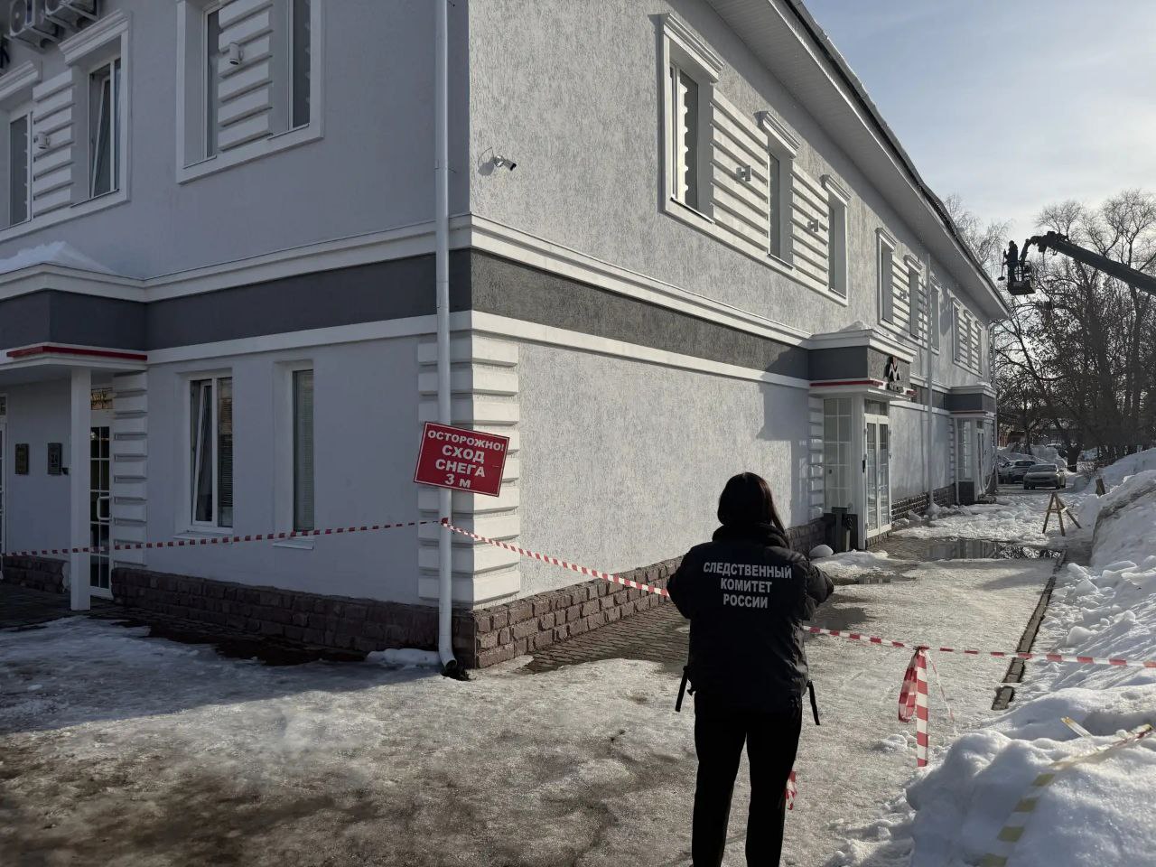 Происшествие случилось сегодня на улице Старых Большевиков. Упала наледь с крыши офисного здания. В травмой головы пожилая женщина госпитализирована.