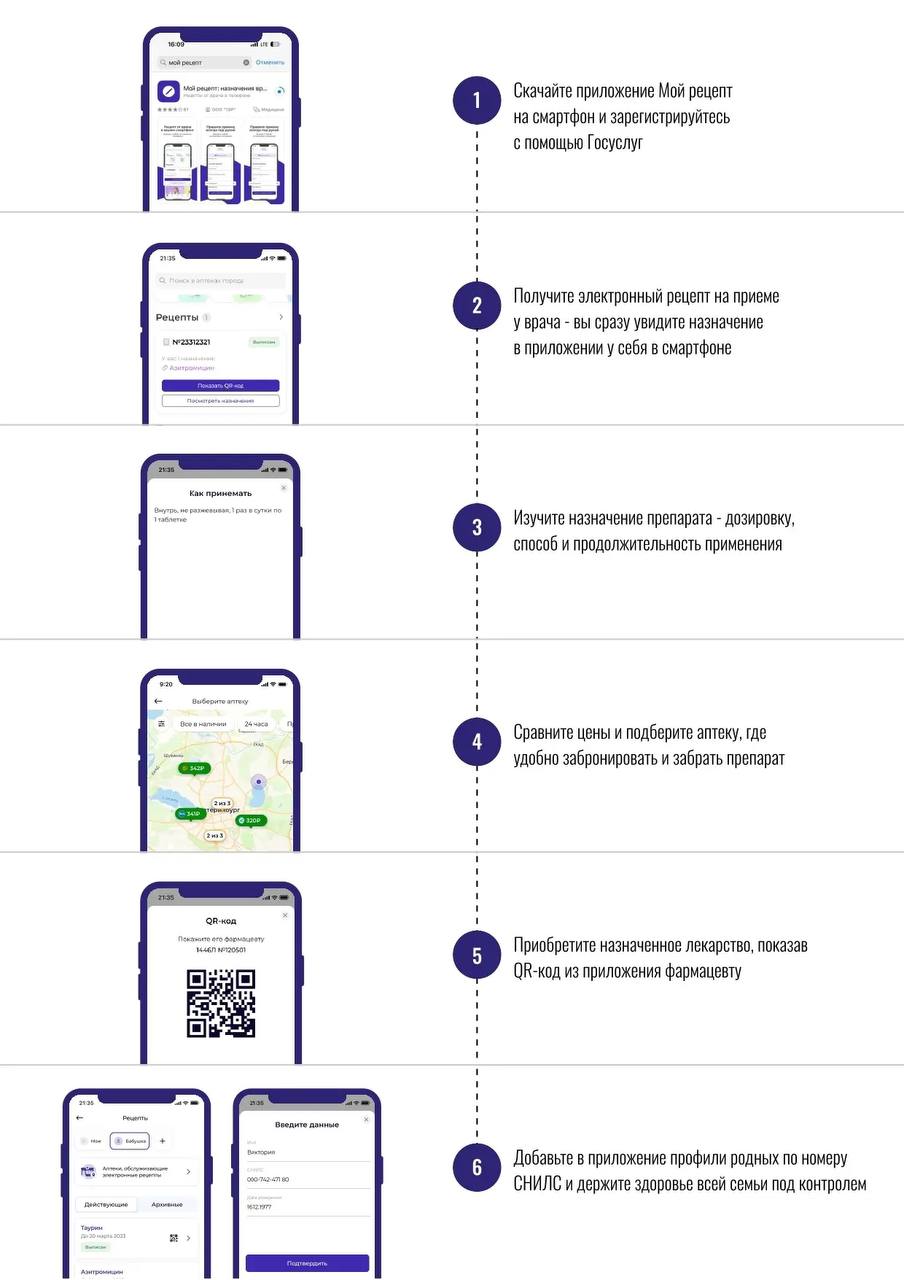 Как это работает: вы получаете электронный рецепт от врача, показываете QR-код фармацевту в любой аптеке и покупаете необходимые лекарства.