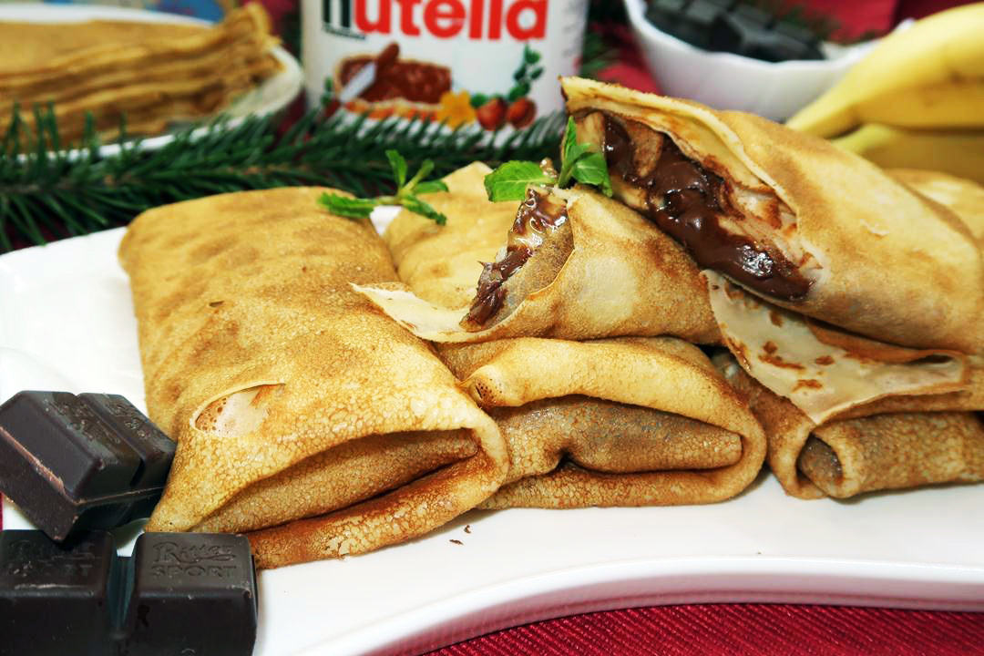 Блины — это классика, которая радует в любое время дня. Уютное семейное блюдо, прекрасно подходящее как для завтрака, так и для ужина. Фаршированные блинчики занимают особое место в сердце всех сладкоежек. Они порадуют ваших близких и сделают праздник, например, Масленицу, ещё более запоминающимся. Простые блины благодаря начинке превращаются в настоящий десерт. Для начала можно испечь тонкие блинчики по любимому рецепту, а подойдет как молоко, так и вода. На этот раз выбираются блинчики с молоком и яйцами, которые идеально сочетаются с бананами и Нутеллой.
