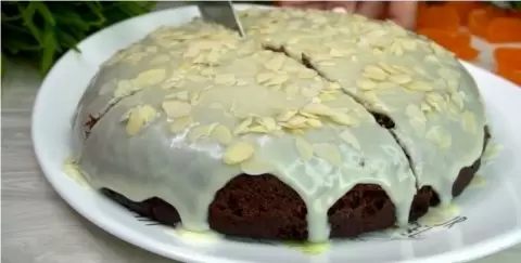 6. Готовый пирог можно украсить растопленным белым шоколадом или по вашему вкусу. Он прекрасно сочетается с чаем и идеален для быстрого перекуса.