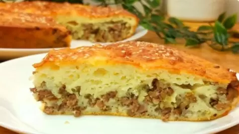 Приготовление теста занимает считанные минуты. Все, что нужно, — это смешать сметану, яйца и немного муки. А начинка из мясного фарша тоже не требует долгого ожидания. Этот пирог универсален: его можно разнообразить различными начинками, о которых упомянем чуть позже.