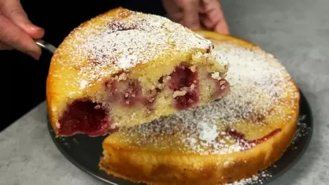 Этот пирог отличается невероятной нежностью, влажностью, а клубника добавляет великолепную кислинку. Наслаждайтесь с чашечкой чая — десерт исчезнет с вашего стола в мгновение ока!