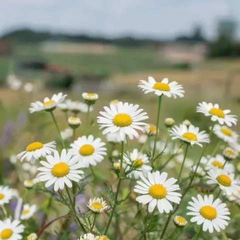 Ромашка аптечная – это классика славянской медицины с её характерным яблочно-медовым ароматом. Для данного растения подойдут солнечные места и не слишком плодородные почвы. Цветы собирают в разгар цветения, а высушенные используют для приготовления чая, который помогает при простудах и обладает противовоспалительным эффектом.