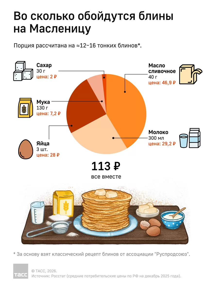 Больше информации о ценах на блины в преддверии Масленицы можно будет увидеть в инфографике от ТАСС.