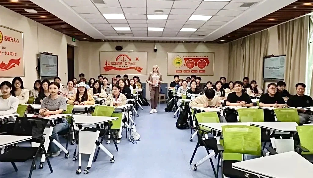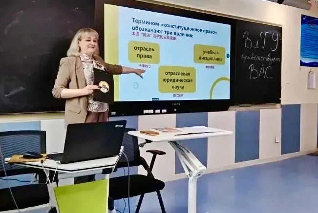 Она читает курс лекций по конституционному праву России студентам второго курса Хэбэйского колледжа политологии и права.