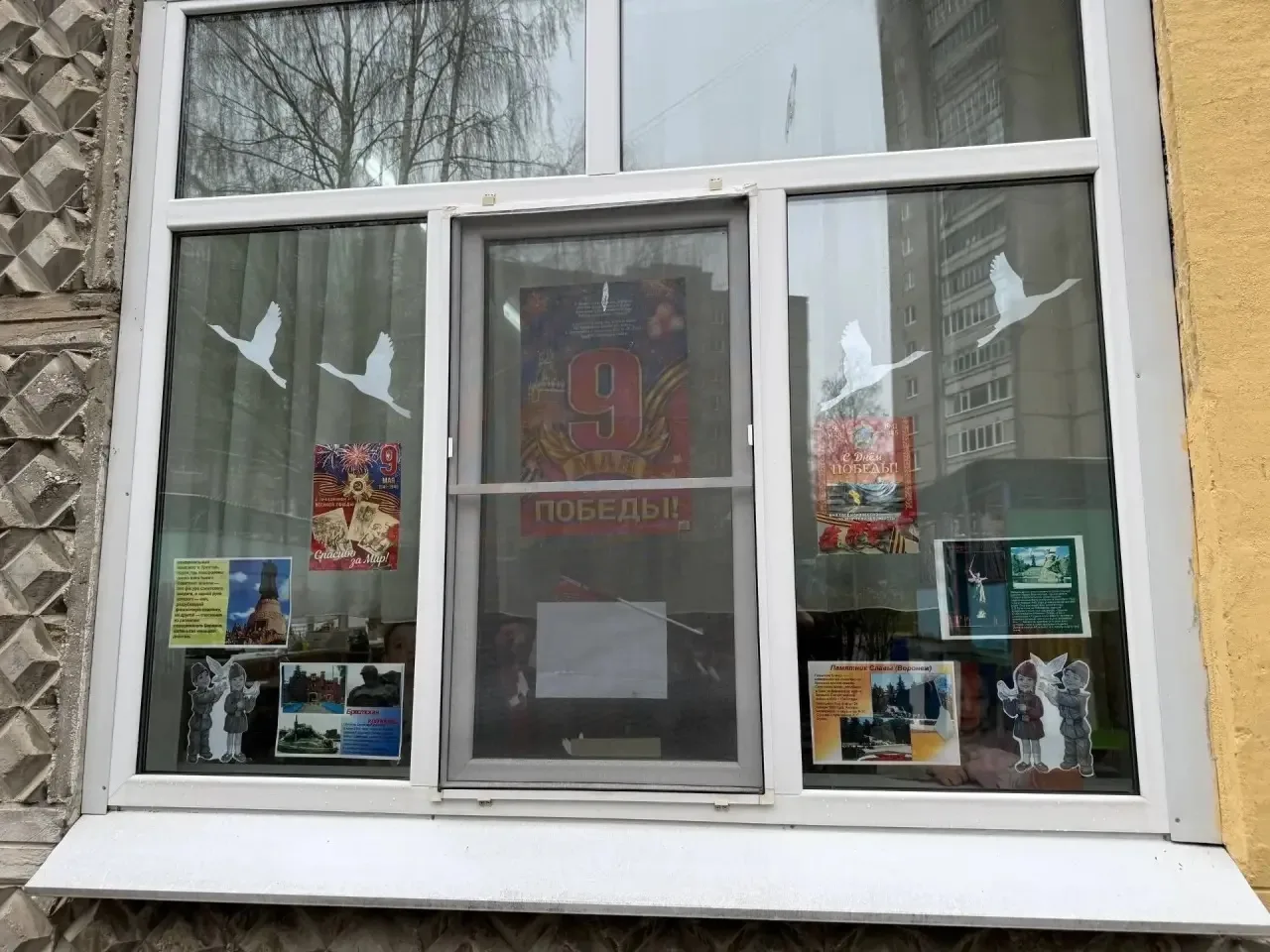 Активисты создали композиции с символикой Великой Победы. Каждое окно теперь напоминает о героических событиях 1941–1945 годов.