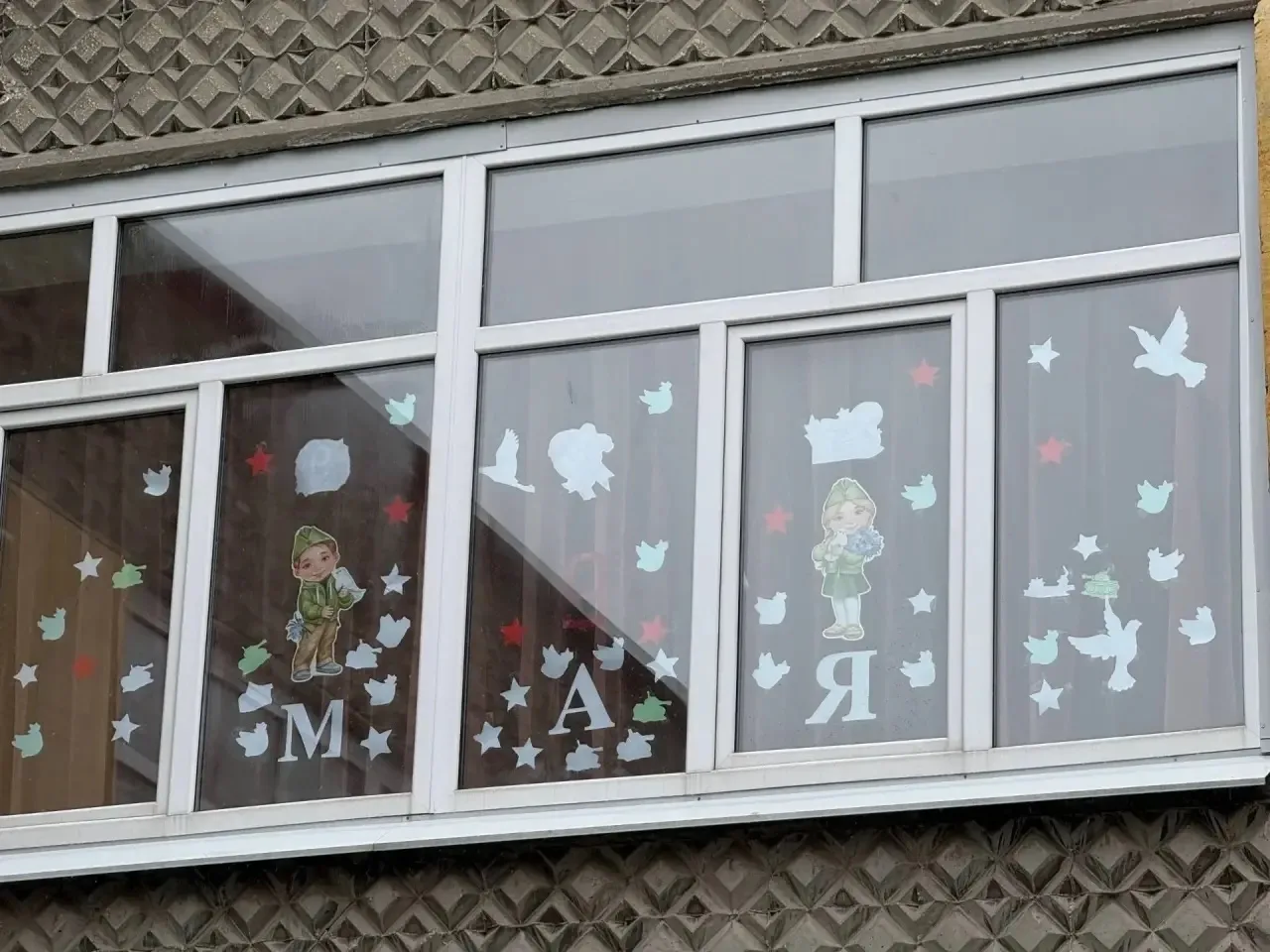 В Детском саду №6 к акции подошли с особым теплом. Здесь над оформлением работали целой командой: педагоги, волонтеры «Боевого Братства», активисты и, конечно, сами воспитанники. Ребята старательно вырезали из бумаги белоснежных «голубей мира», которые теперь украшают окна сада.